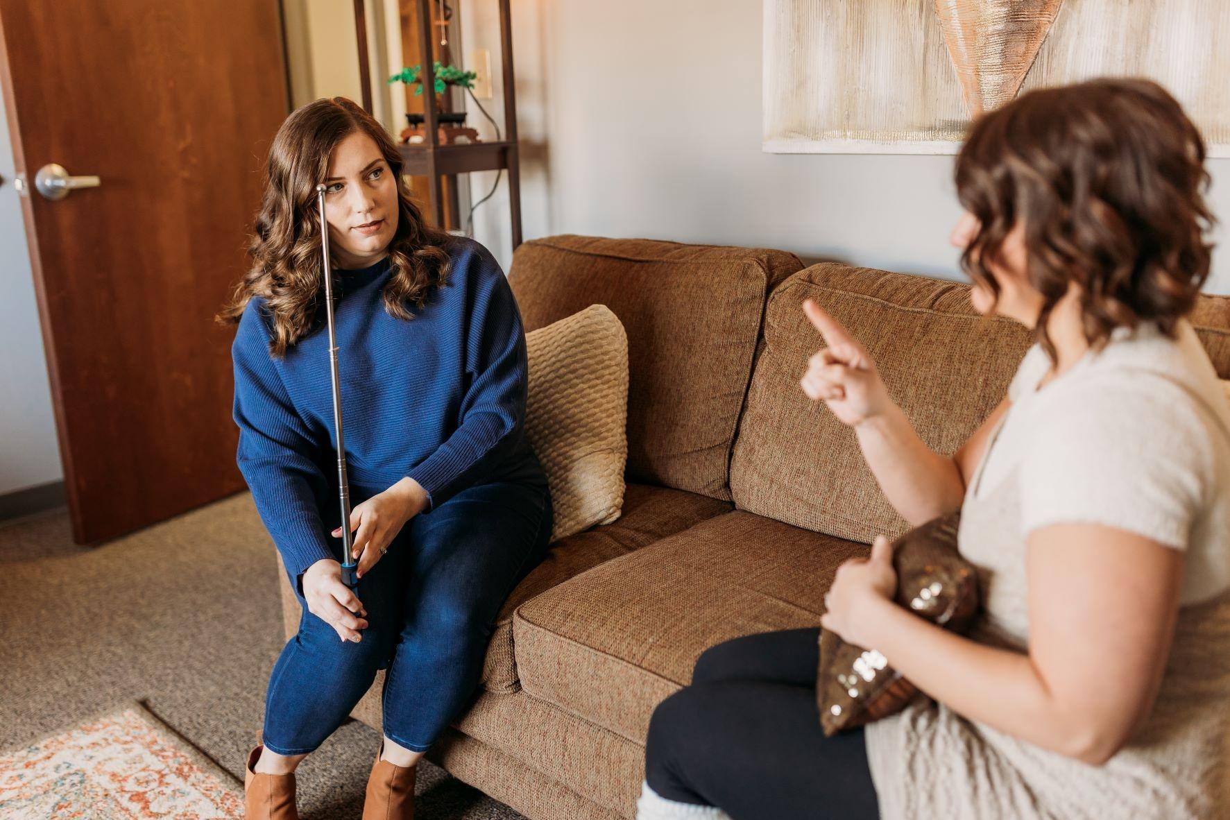 A Brainspotting session typically starts by popping on some bilateral stimulation music and ensuring the client feels safe and cozy. The therapist would check in with the client about what has been weighing them down and what they want to release in that session. As they chat, different emotions, memories, and physical sensations may come up that will give them helpful information. Next, the therapist would check in with the client about how intense those feelings are on a scale of 0-10.